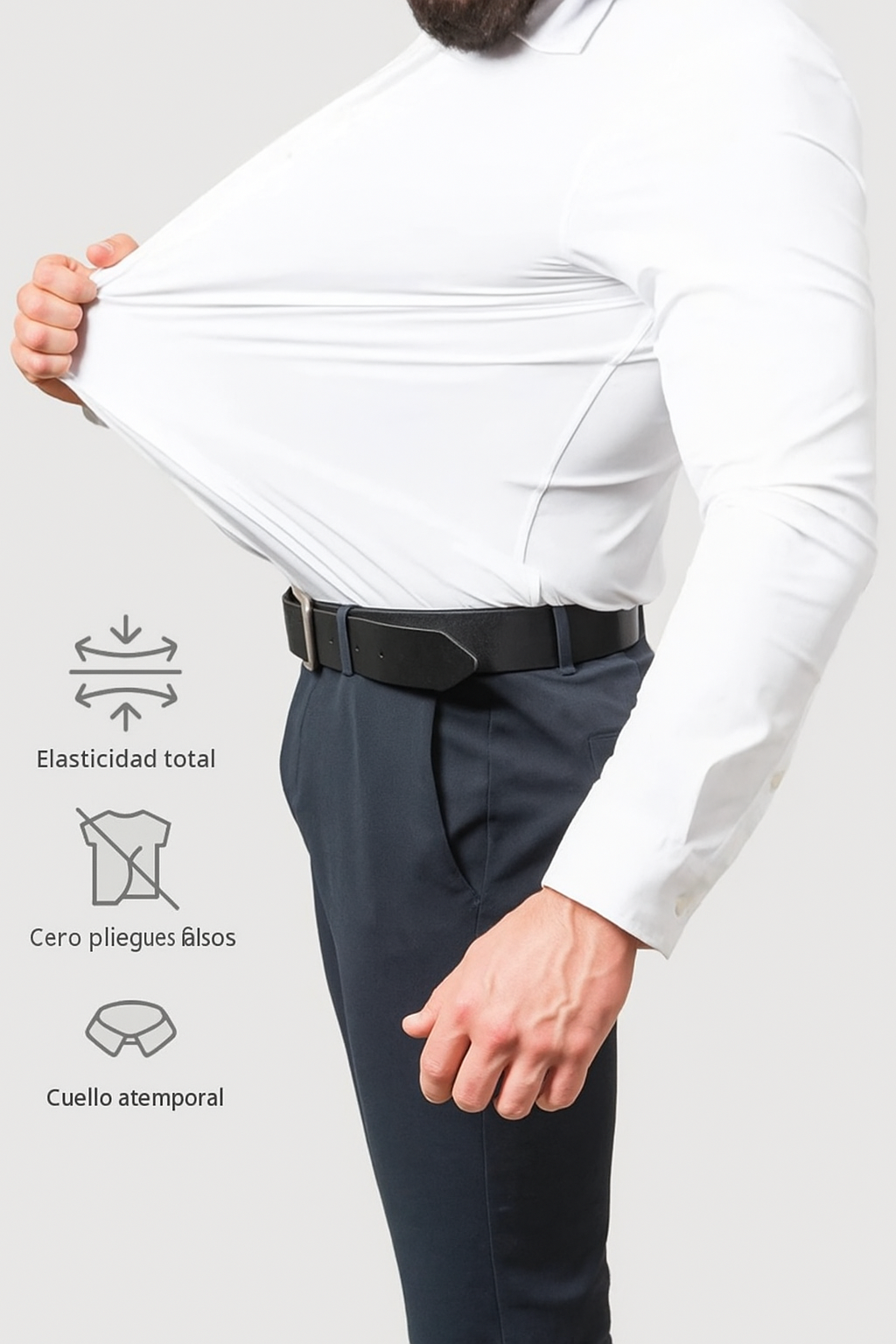 El diseño elástico se adapta a tus movimientos con una facilidad extraordinaria. Ya sea que estés haciendo una presentación, conduciendo o viajando, la camisa se adapta perfectamente, ofreciendo una amplitud fluida que preserva la silueta y la postura.
